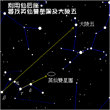 可用雙筒望遠鏡從仙后γ往仙后δ一路延伸即可見。