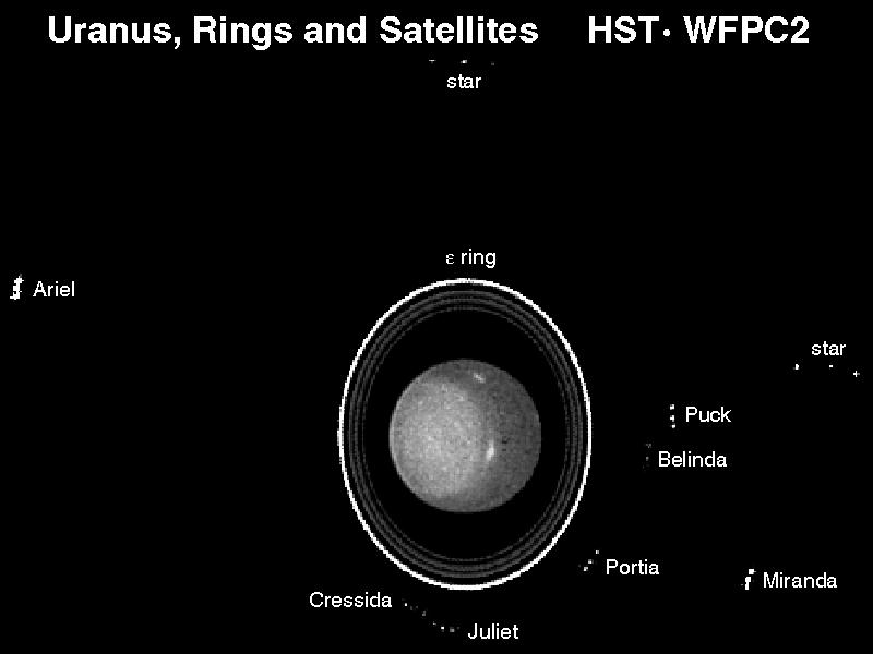 太陽系,天王星的環及衛星都沒有再取得更進一步的資料。所幸,HST上的廣視野