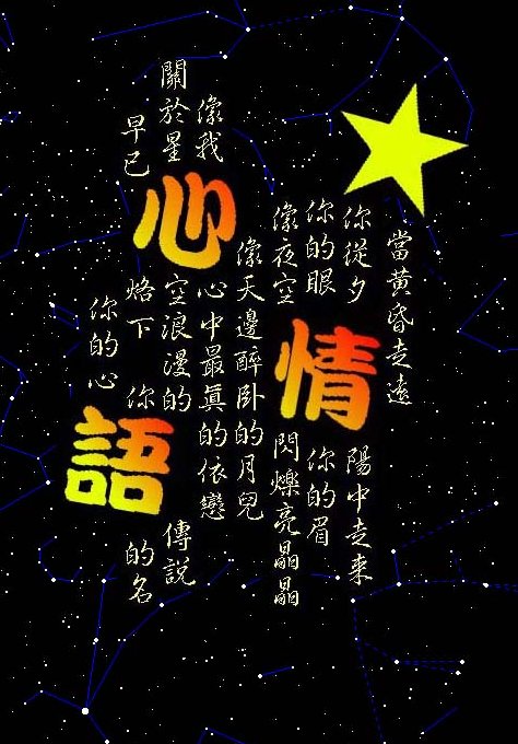 說明:漸層改為由大星星(黃)漸層到『情』字(紅) 星圖為七月一日晚上十一點,東方星空.
