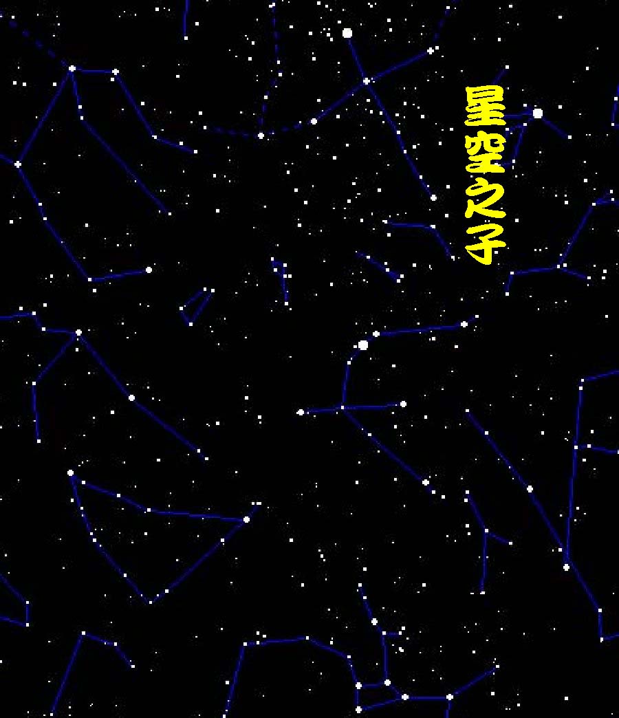 說明:星空之子(夜光),星點(夜光) 星圖為七月一日晚上十一點,北方星空.