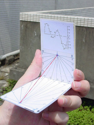 自製攜帶型水平式及垂直式日晷。可與手錶配合而具有指南作用。